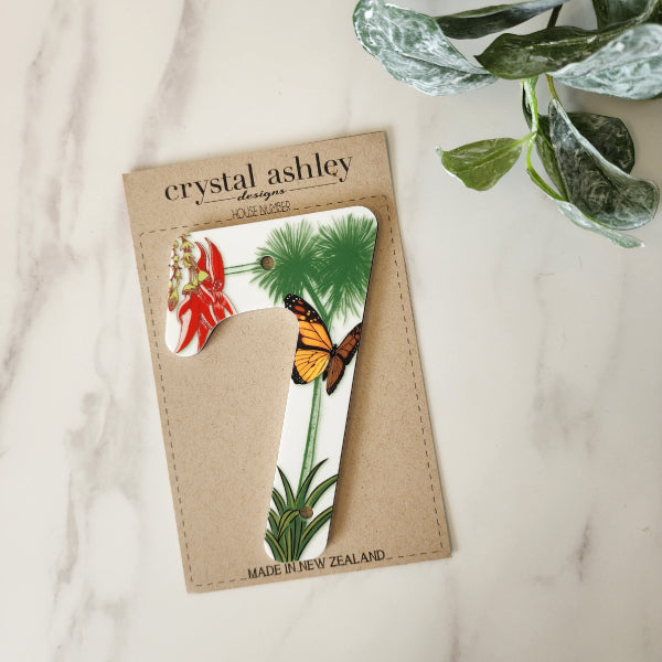 Elevate your home's curb appeal with our stunning House Number - NZ Floral 7 (12cm). This beautifully designed house number is printed directly onto 3mm thick white acrylic, ensuring durability and a sleek finish. The charming NZ floral design infuses your home with a touch of nature, making it an eye-catching piece that enhances your entrance while being functional. Each house number comes with an individual mounting template, simplifying the installation process for you. Our flat-packed design makes it a perfect gift option for loved ones abroad, ensuring easy and secure shipping. The pre-drilled 5mm holes allow for straightforward installation; however, we advise against the use of power drills to prevent over-tightening which may cause damage. The dimensions of this stunning house number are 120mm H x 69mm W, making it perfectly proportioned for visibility without being overwhelming. Please note that screws are not included, so be sure to have the appropriate screws ready for installation. Choose our NZ Floral House Number to add a personalized and stylish touch to your home today!