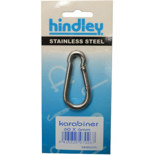 Manufactured from stainless steel, so ideal for marine applications. Spring loaded and self closing, suitable for linking chains etc. and quick release and attachment of ropes, loops and rigging. Non rated. 6 x 60mm (1/4 x 2 1/2"ť). Carded.
