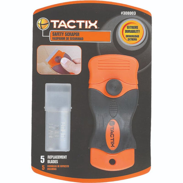 Introducing the Tactix Scraper Safety with 5pc Blade – your essential tool for safe and efficient scraping. Designed with a sturdy safety blade guard, this scraper ensures maximum protection during use, making it perfect for both professionals and DIY enthusiasts. The ergonomic, non-slip bi-material handle offers a comfortable grip, enhancing your control for various tasks, whether you're scraping paint, adhesive, or any unwanted material. The included 5-piece blade set provides versatility for different scraping needs and surfaces, ensuring you always have the right blade at hand. This Tactix safety scraper is an invaluable addition to your toolkit, reducing the risk of injuries while boosting productivity. Plus, enjoy the convenience of sourcing this product locally from New Zealand, meaning you won't face unexpected import costs, duties, or taxes. With our commitment to providing quality tools, we guarantee that your order will arrive swiftly and securely with FREE shipping available. Please note, combined shipping for other items is not available with this product. Elevate your DIY and professional projects with the reliable Tactix Scraper Safety 5pc Blade. Order yours today from SmartfoxAU !
