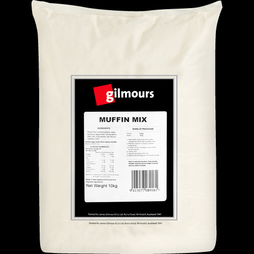 Discover the delightful convenience of Gilmours Muffin Mix 10kg, your ultimate solution for creating irresistible, freshly baked muffins in no time! This bulk-sized muffin mix is perfect for bakeries, cafes, and home bakers alike, providing an easy and economical way to whip up your favorite muffin flavors. Made with premium ingredients, our muffin mix ensures a light, fluffy texture and a delicious taste that your customers will love. Whether you're making classic blueberry muffins, rich chocolate chip muffins, or unique flavors, Gilmours Muffin Mix offers versatility and superb quality every time. Simply add water and your choice of fruits or chocolate for a quick and hassle-free muffin baking experience. Save time without compromising on taste – with Gilmours Muffin Mix, you can bake in large batches faster than ever! This 10kg bulk muffin mix is an ideal choice for those who choose to buy in bulk, providing excellent value for your money. Perfect for commercial kitchens and avid home bakers, this muffin mix simplifies the baking process while delivering mouthwatering results. Elevate your baking game with Gilmours Muffin Mix 10kg and impress your customers or family members with delectable muffins that are easy to prepare. Stock up today and enjoy the homemade taste that brings comfort and joy with every bite!