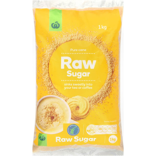 Discover the natural goodness of Woolworths Raw Sugar 1kg, the ideal choice for health-conscious bakers and coffee enthusiasts alike. This premium raw sugar features a rich caramel-colored coating that not only enhances its visual appeal but also elevates the flavor profile of your favorite recipes. Made from pure sugar cane, Woolworths Raw Sugar retains its natural sweetness, making it perfect for baking, sweetening beverages, or even as a topping for your breakfast cereals. Unlike refined sugars, this unprocessed alternative is packed with minerals and boasts a distinct molasses flavor that brings depth to your culinary creations. Bring home this versatile sweetener and unlock endless possibilities in your kitchen. Whether you're whipping up a decadent cake, crafting homemade pastries, or simply enjoying a cup of coffee, Woolworths Raw Sugar promises to add that extra touch of flavor without compromising on quality. Choose Woolworths Raw Sugar for a healthier alternative that satisfies your sweet tooth while enriching your dishes with its unique taste. Available in a convenient 1kg package, you'll have plenty of sweetener on hand for all your culinary adventures. Upgrade your baking and beverage game with Woolworths Raw Sugar today and experience the difference that natural sweetness makes in every bite.