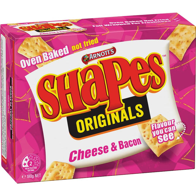 Discover the irresistible taste of Arnotts Shapes Crackers Cheese & Bacon, the ultimate snack for cheese lovers and bacon enthusiasts alike. Each cracker is perfectly baked to create a light, crispy texture that pairs wonderfully with the rich flavors of cheese and the savory taste of bacon. Ideal for gatherings, movie nights, or simply as a tasty treat, these crunchy crackers deliver a deliciously bold flavor that will keep you reaching for more. Packed in a convenient resealable bag, Arnotts Shapes ensure freshness, making them a go-to option for on-the-go snacking or entertaining guests at home. Enjoy them solo or pair them with your favorite dips and spreads for a heightened flavor experience. Whether you're hosting a party or just enjoying a quiet night in, Arnotts Shapes Crackers Cheese & Bacon are the perfect companion for all occasions. Indulge in the mouthwatering fusion of cheese and bacon today and make every moment enjoyable with Smartfox AU's top snack. Trust us, one bite of these delectable crackers will have you hooked. Elevate your snacking game with this delightful treat that combines two of the most beloved flavors in a single, crunchy bite. Add Arnotts Shapes Crackers Cheese & Bacon to your cart now and treat yourself or a loved one to an unforgettable snack experience!