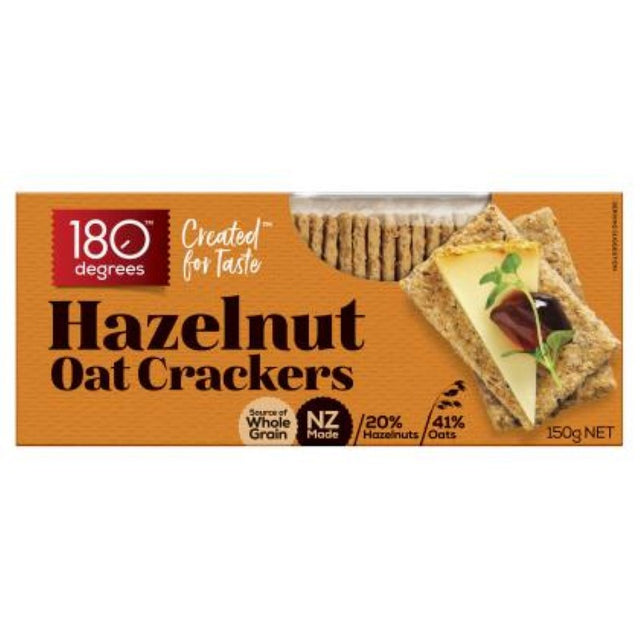 Enjoy the wholesome goodness of our New Zealand-made Cracker Oat Hazelnut. Each cracker delivers a satisfying crunch and a rich, nutty taste that defines the essence of artisan quality. With its convenient pack size of 150g, it's easy to take on the go or keep at home for whenever you need a delightful nibble. Add this gourmet snack to your shopping cart today and indulge in the sumptuous flavors of 180 Degree oat hazelnuts, available now at Smartfox. Perfect for gifting or personal indulgence, these artisan crackers are a must-have for any snack enthusiast.