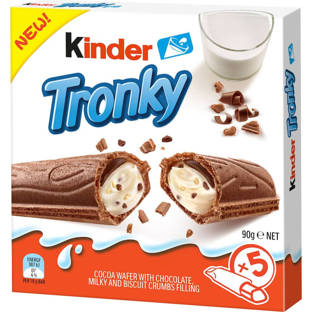 Discover the delicious Kinder Tronky Biscuit Bar Multi Pack, a delightful treat for chocolate and biscuit lovers! Each multi pack contains individually wrapped Kinder Tronky bars, perfect for sharing or indulging in a sweet moment anytime, anywhere. Crafted with a crispy biscuit exterior, these bars are filled with a smooth, rich chocolate cream, making them an irresistible snack for kids and adults alike. Enjoy the delightful balance of crunchy and creamy textures that Kinder is known for. Ideal for lunchboxes, picnics, or as a satisfying treat after a long day, the Kinder Tronky Biscuit Bar Multi Pack is a must-have in every pantry. Kid-approved and perfect for satisfying cravings, this multi pack is an excellent addition to your snack collection. Buy the Kinder Tronky Biscuit Bar Multi Pack at Smartfox AU today and enjoy a moment of chocolatey bliss with every bite!