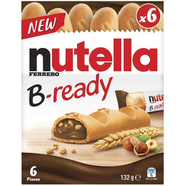 Light crunchy wafer biscuit, filled with signature nutella, sprinkled with light crispy pieces. 6 biscuit bars individually wrapped for convenience.
