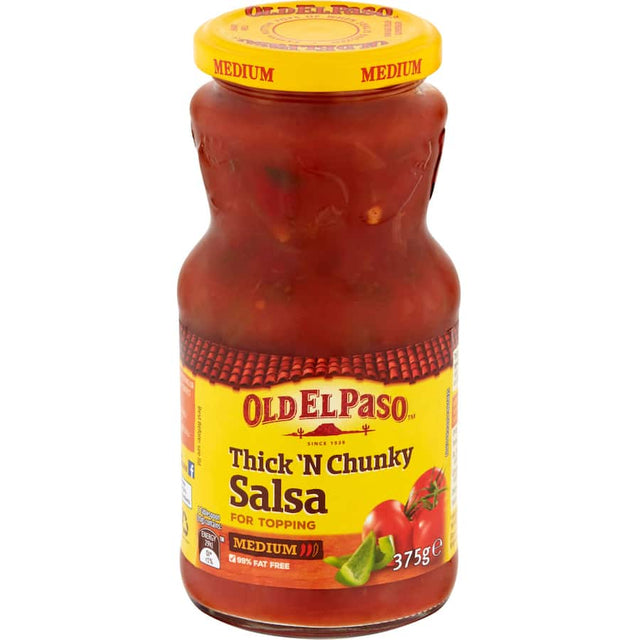 Discover the vibrant taste of Old El Paso Medium Chunky Salsa Mexican, the perfect accompaniment to elevate your favorite dishes! Packed with fresh tomatoes, crunchy onions, and a medley of spices, this salsa offers a delightful tangy flavor profile with just the right amount of heat. Ideal for dipping tortilla chips, drizzling over tacos, or mixing into burrito bowls, this chunky salsa enhances every bite. Whether you're hosting a fiesta or enjoying a quiet night in, Old El Paso Medium Chunky Salsa is a must-have in your pantry. Embrace the authentic flavors of Mexico and add a burst of freshness to your meals! With its convenient jar packaging, it's easy to keep on hand for family dinners or casual get-togethers. Experience the perfect blend of ingredients that make this salsa irresistibly zesty and satisfying. Transform your gatherings with this classic salsa that is gluten-free and made from quality ingredients. Salsa lovers, rejoice! Your search for the ultimate medium salsa ends here. Grab your jar of Old El Paso Medium Chunky Salsa Mexican today and make every meal a celebration of flavor!