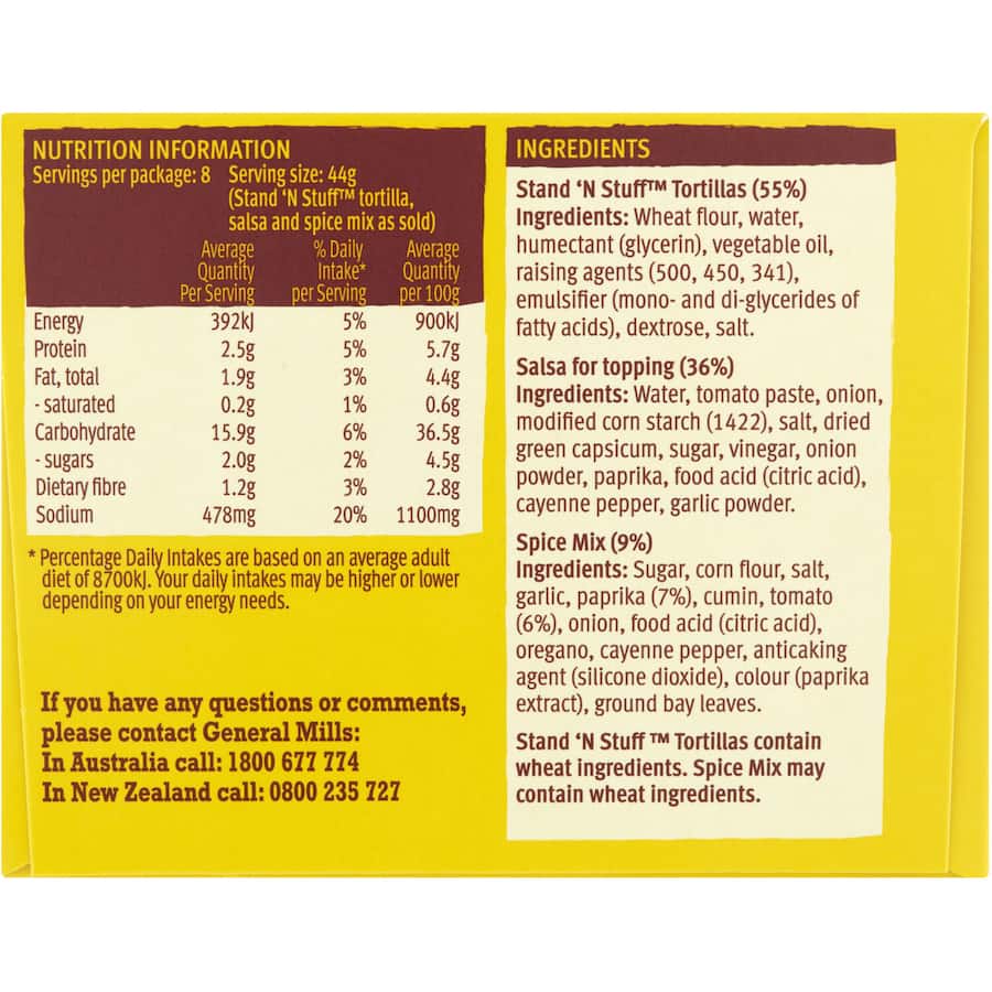 Reimagine taco night with the Old El Paso Stand N Stuff Mexican Soft Taco Kit Mild from Smartfox AU! This convenient kit is a must-have for any Mexican food lover, making your taco preparations effortless and more enjoyable. With its unique stand-and-stuff design, these soft taco shells stay upright on your plate, so filling them is a breeze—no more spills or messes! Perfect for family dinners or a fun gathering with friends, each kit includes soft flour tortillas and a mild seasoning mix that promises a delightful flavor without overwhelming heat, catering to all taste preferences. Simply add your favorite fillings such as seasoned beef, shredded cheese, lettuce, and salsa to create a meal that everyone will love. The possibilities for customization are endless, whether you stick to classic combinations or explore new, creative concoctions. Dive into the fun of easy, delicious, and interactive meal-making with our Old El Paso kit—it’s not just food; it’s a flavor adventure designed for sharing and enjoyment. Stock up now at Smartfox AU for a tasty and effortless way to enjoy Mexican cuisine at home.