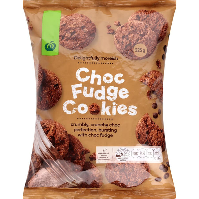 Woolworths Choc Fudge Cookies are free from artificial colors, flavors, and preservatives. They are also endorsed for their delightful taste and moreish quality. Once you try these cookies, your cookie jar won't stay full for long. Treat yourself to the perfect balance of chocolate and fudge with Woolworths Choc Fudge Cookies.