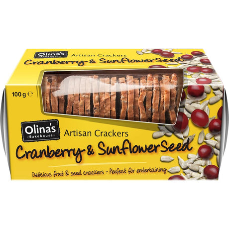 $18.20 AUDUnit price /UnavailableOlina's Bakehouse Artisan Crackers Cranberry & Sunflower Seed 100g