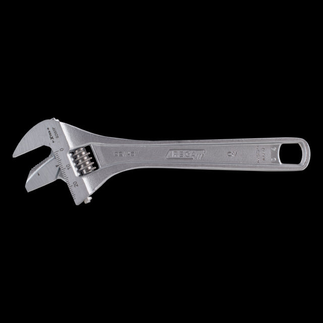 Introducing the Irega Reversible Jaw Adjustable Wrench - a versatile tool designed for unparalleled performance. Its unique Reversible Jaw and Xtra capacity redefine convenience, enabling seamless work on larger diameter nuts and pipes using a single wrench. Equipped with a dual scale, millimeters on the front and inches on the back, ensuring precision in every use. Crafted from top-notch Chrome Vanadium Steel, it guarantees lasting quality and robustness. This professional-grade adjustable wrench thrives as a multipurpose companion, perfectly adept at handling objects of cylindrical shapes. Boasting exceptional ergonomics, it"™s light, compact, and an epitome of comfort. With manufacturing adhering to the most rigorous International Standards, including UNE 16532, ISO 6787, BS ISO 6787, ASME B107.100, and DIN 3117, Irega proudly champions a 100% Quality Assured legacy.