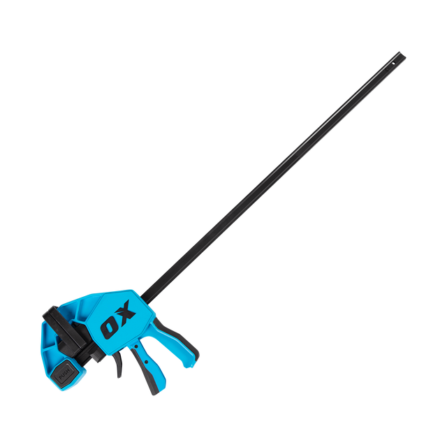 The OX Pro Heavy Duty Bar Clamps are engineered with precision and durability in mind. Constructed using strong engineering plastics compliant with ROHS and REACH regulations, these clamps are built to withstand rigorous demands. The induction-hardened rail enhances strength and longevity. Featuring a long leverage design, these clamps easily exert high pressure when needed and can swiftly convert to a spreader configuration.