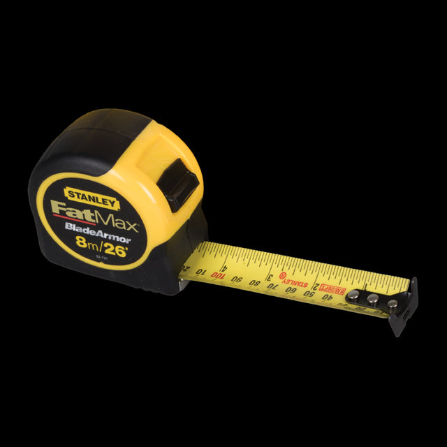 Introducing the STANLEY 8m Fatmax Tape, the ultimate heavy-duty tape measure designed for professionals and DIY enthusiasts alike. Engineered with precision and durability in mind, this 8m tape measure is perfect for any task, from carpentry to construction. Featuring a robust design, the Stanley Fatmax tape offers superior wear resistance, making it a go-to choice for those requiring reliable and accurate measurements every time. Its standout feature includes a wide blade that simplifies reading and provides stability during measurement, ensuring you can easily navigate tight spaces and challenging angles. With its ergonomic grip, this tape measure ensures comfort and control, allowing you to work efficiently and effectively. The Stanley Fatmax 8m Tape also includes a handy belt clip for easy access, ensuring you can keep it close at hand for all your measuring needs. Whether you're a contractor, builder, or just tackling home improvement projects, the STANLEY 8m Fatmax Tape is your perfect measuring companion. Experience the reliability and performance that has made Stanley a trusted name in tools. Shop now at Smartfox AU and elevate your toolkit with this essential measuring tool today!