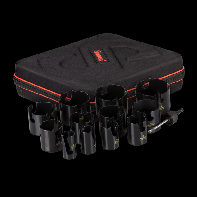 Introducing the STARRETT TCT Holesaw Set - 13pc, the ultimate tool for precision cutting! This premium TCT (Tungsten Carbide Tipped) holesaw kit offers unmatched durability and performance, making it perfect for electricians, woodworkers, and DIY enthusiasts alike. The 13-piece set includes hole saws of varying sizes, allowing you to tackle any project with ease. Whether you're drilling through wood, plastic, or metal, these holesaws deliver fast and clean cuts. The versatility of this holesaw set is unmatched, providing you the flexibility to work on multiple applications. Housed in a compact, sturdy case, this holesaw set not only keeps your tools organized but also makes for easy transportation to job sites. Each holesaw is designed for quick setup and efficient cutting with reduced friction, ensuring that you can get the job done swiftly. Upgrade your tool collection with the STARRETT TCT Holesaw Set - 13pc, and experience the difference that quality makes in your drilling tasks. Enhance your craftsmanship and make every cut count! Get yours today at Smartfox AU!