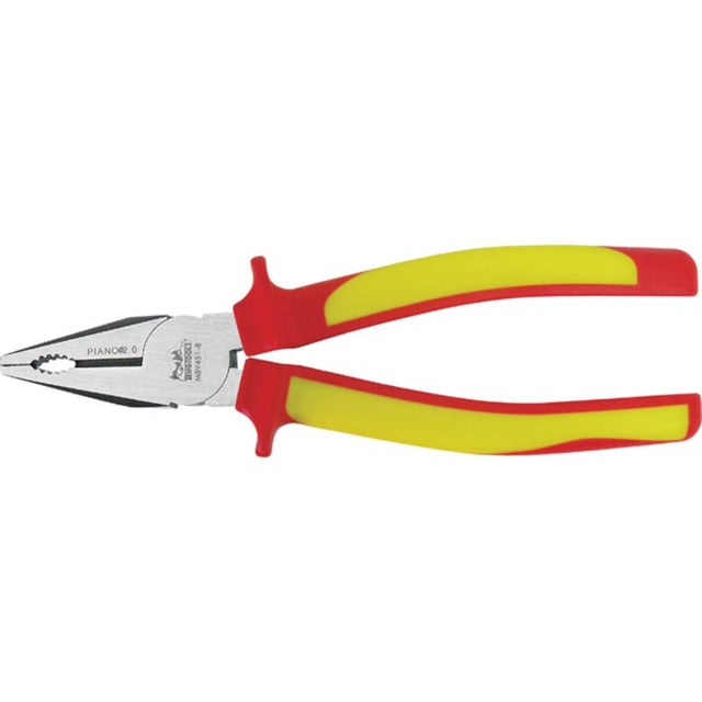 Introducing the Teng MB 8in 1000V VDE Combination Plier, an essential tool for professionals and DIY enthusiasts alike. Made from high-quality chrome molybdenum steel, this combination plier is crafted for maximum durability and performance. Its optimal 80-degree cutting edge angle allows it to effortlessly cut through various materials, including piano wire (up to 2.0mm), steel wire (up to 2.2mm), and iron wire (up to 4.0mm).