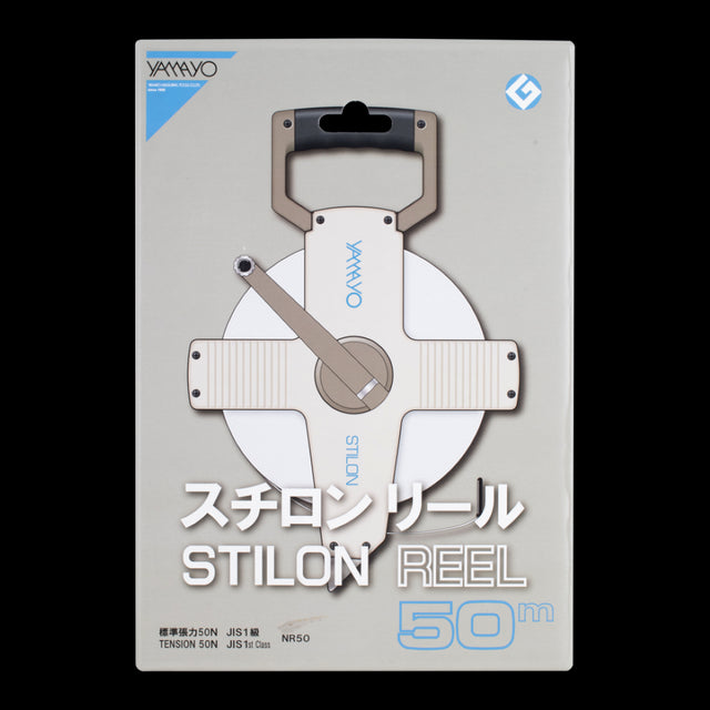 The Yamayo "Stilon" Long Measuring Tape a high carbon steel core coated with thick white nylon, encased in a durable ABS open reel. This robust construction, enhanced by a water-resistant clear coating, ensures the tape is tough, durable, and non-rusting, even in harsh conditions like seawater. Its sturdy edges significantly extend the blade's lifespan, making it unbreakable even when bent acutely, stepped on, or run over by a truck. Unlike ordinary steel tapes, it remains intact under extreme stress. The tape starts at zero from the hook (type E) blade, making it precise and reliable for all measuring needs.