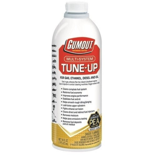 Enhance your vehicle's overall performance with the Multi System Tune Up 473ml by GUMOUT. This powerful fuel system cleaner is specifically formulated to boost fuel economy, reduce harmful emissions, and prolong the life of your engine. Whether you drive a car, truck, or SUV, this versatile product ensures optimal cleanliness for various engine components such as fuel injectors, carburetors, intake valves, ports, piston tops, combustion chambers, and crankcases.