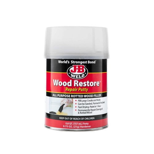 Revive your wooden surfaces with the **Wood Restore Repair Putty 946ml - JB Weld**, the ultimate solution for all your wood restoration needs. This versatile wood filler is specifically designed to provide **permanent repairs** to damaged wood, making it the ideal choice for both **interior and exterior wood projects**. Whether you need to fill **small cracks**, large holes, or any type of blemish, this wood putty delivers unmatched results. The quick-drying formula allows you to achieve a hard, workable surface in just 15 minutes, giving you the efficiency you need for your **DIY projects**. Once set, the putty can be tapped, filed, sanded, drilled, and painted, seamlessly blending with your existing wood. Ideal for enthusiasts and professionals alike, this **JB Weld Repair Putty** helps preserve the beauty of your wooden furniture, decks, and fixtures. Restore integrity and aesthetics with **Smartfox AU**’s reliable product that stands up to the test of time. Putty can also be used on mouldings, cabinets, and even outdoor structures. Don’t wait—revitalize and enhance your wood surfaces today with **Wood Restore Repair Putty 946ml** and experience the ease and durability of JB Weld.