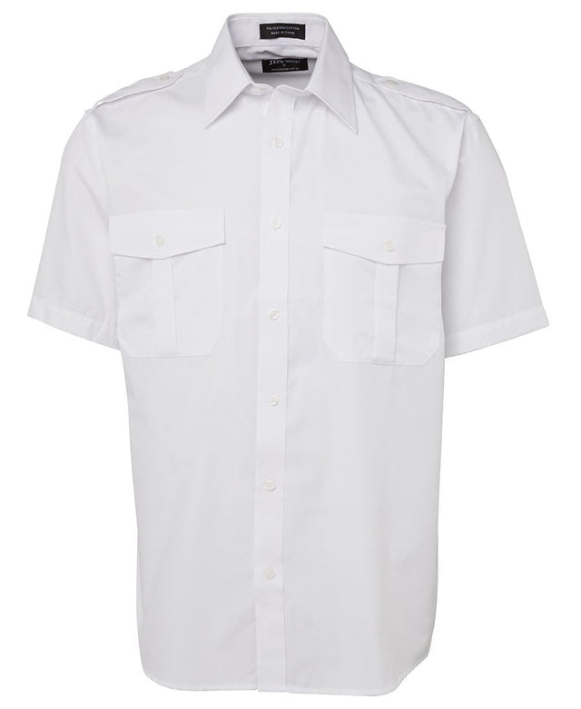 Two reinforced chest pockets with button-down flap, one with pen inserts