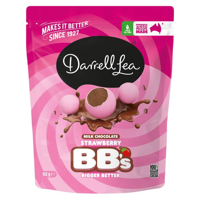 Indulge in the decadent delight of Darrell Lea's Sweets Bb's Chocolate Strawberry (152g) – a blissful treat designed to satisfy your sweet cravings. Each piece features a deliciously smooth milk chocolate center, enveloped in a satisfyingly crisp strawberry-flavored shell. Perfect for gifting or treating yourself, these sweet morsels are a delightful blend of flavors that bring joy to every bite. Whether you’re enjoying a movie night, celebrating a special occasion, or just craving a sugary snack, Darrell Lea embodies the ultimate chocolate experience. Made with premium ingredients, our chocolate-covered strawberry treats are crafted to please chocolate lovers everywhere. Elevate your dessert game with these classic favorites that combine the rich taste of milk chocolate with a refreshing strawberry twist. From kids to adults, these sweets are guaranteed to bring smiles! Treat yourself or share with friends and family, and discover why Darrell Lea’s Bb's Chocolate Strawberry is a beloved choice among candy aficionados. Add this charming pouch to your shopping cart today and savor the bliss of every delightful bite!