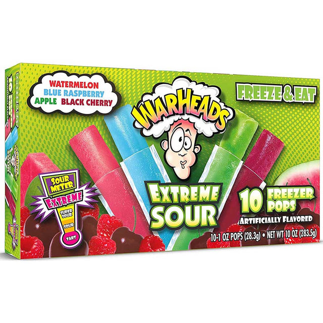 Experience a refreshing summer treat with Warheads Freezer Pops! This pack includes 12 pops, each with bold, iconic flavors. Enjoy 5 mouth-watering options: Watermelon, Blue Raspberry, Apple, and Black Cherry. Perfect for picnics, parties, or cooling off on hot days, these freezer pops are easy to store and satisfying to eat. Great as after-school snacks or for summer gatherings, Warheads Freezer Pops are sure to delight kids and adults alike. Order your pack today to beat the heat with these deliciously sour and sweet treats! Not sold individually, stock up on fun with a pack of 12! Ideal for kids' birthdays or summer celebrations, these colorful pops might quickly become your family's favorite frozen dessert. Grab your Warheads Freezer Pops and embark on tasty adventures!