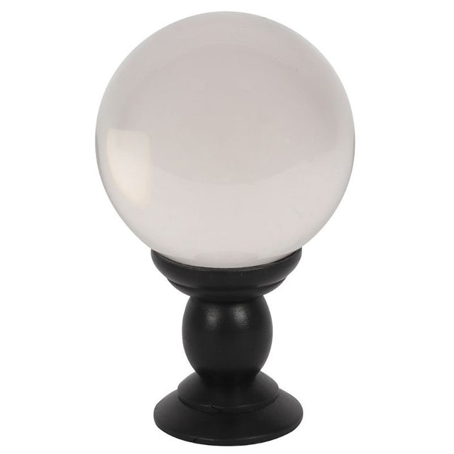 H:20 x W:13 x D:13 cm - Glass &MDF. This large, clear crystal ball is not only a powerful tool in fortune telling and scrying, but also makes an eye-catching piece of décor. Whether used for divination or a table accessory at Halloween, this crystal ball is sure to be a conversation piece. Comes on black wooden stand and a beginners guide to Crystal Balls. Keep out of direct sunlight.