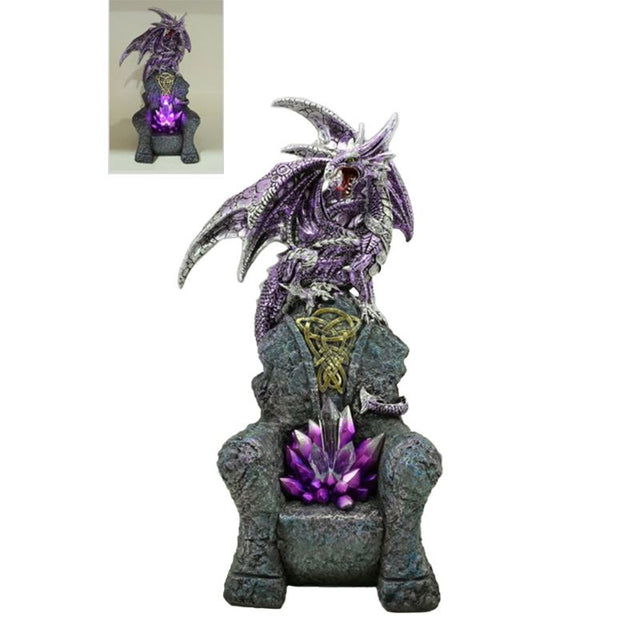 Introducing the stunning **Dragon On Throne Purple LED**, a must-have collectible for any dragon enthusiast or gothic decor lover. Standing at H:26.5 x W:14.5 x D:11.5 cm, this exquisite piece features a captivating dragon seated on a throne, radiating mystical charm with its **glowing purple LED crystals** that change color, creating an enchanting ambiance in any room. Crafted from the finest resin, each **hand-painted detail** enhances the allure and quality of this magnificent decor item. The **Dragon On Throne Purple LED** is not only a perfect addition to your fantasy collection but also a unique gift for those who appreciate the mythical arts. Ideal for display on shelves, desks, or as a centerpiece in themed decor, this dragon will surely turn heads and ignite conversations. Please note that AA batteries are not included for the LED function. Elevate your living space with this bewitching piece that combines **fantasy artistry and illuminating elements** to bring your imagination to life. Shop now at Smartfox AU and embrace the magic of this unforgettable decor item!
