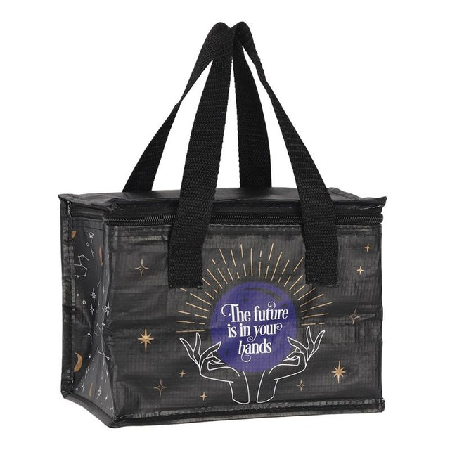 Unlock the magic of lunchtime with the Fortune Teller Lunch Bag, a perfect blend of style and functionality. Designed to keep your meals deliciously fresh, this insulated lunch bag measures H:14 x W:21.5 x D:13 cm, making it an ideal companion for school, work, or picnics. The enchanting crystal ball design, adorned with the inspiring phrase 'The future is in your hands,' adds a mystical touch to your daily routine. Made from 40% recycled plastic, this eco-friendly lunch bag not only keeps your food safe but also promotes sustainability. Join the ranks of those who cherish unique and practical gifts with our bestselling Fortune Teller collection, which includes mystical gifts and homeware that speak to the intuitive soul. Upgrade your lunch experience with the vibrant and versatile Fortune Teller Lunch Bag today, and transport your meals into a realm of enchantment. Perfect for those who appreciate the magic of everyday life, this bag makes a great gift for friends and family. Explore the mystical world of the Fortune Teller range and discover how style can transform your lunchtime experience while supporting eco-conscious choices.