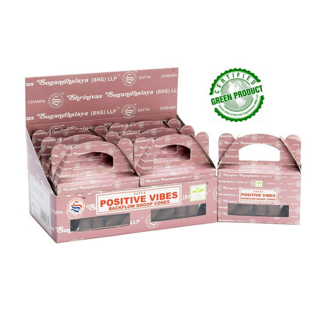 This display box contains 6 packs of beautifully scented Positive Vibes backflow incense cones developed by Satya. The cones are crafted using the highest quality ingredients to offer long lasting fragrance. Use these cones with a backflow incense burner to create stunning smoke displays.