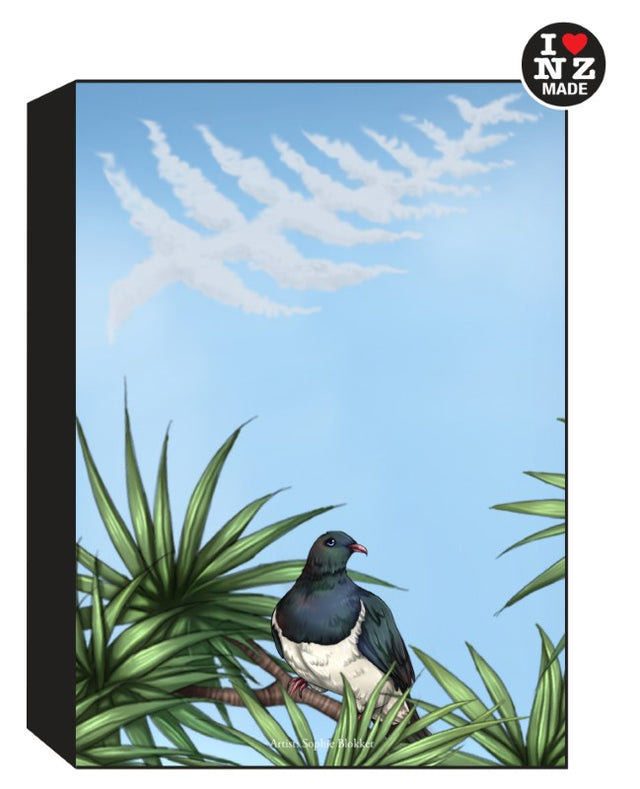 Sophie Blokker Artblock Black Freestanding or Hanging - Silver Fern Wood Pigeon