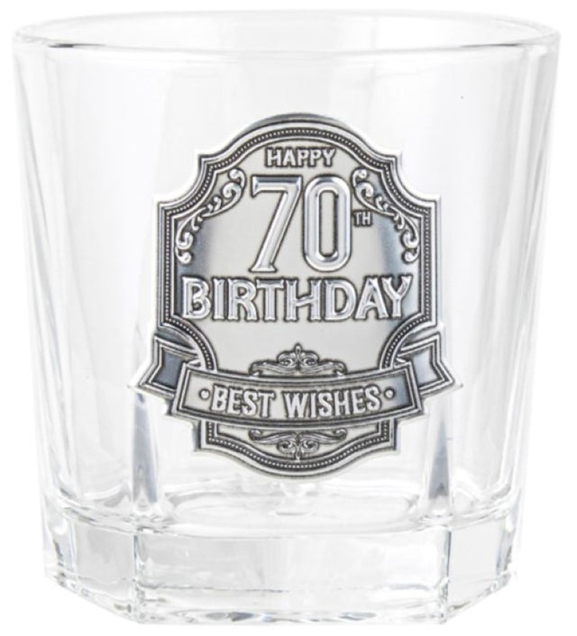 70TH SPIRIT GLASS - ENGRAVABLE PEWTER BADGE (210ML)