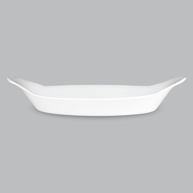 Introducing the exquisite Au Gratin Dish 19.5cm - New Bone by Wilkie Brothers, a stunning addition to your kitchen that elevates both functionality and elegance. Crafted from high-quality new bone porcelain, this au gratin dish features a timeless white design that blends seamlessly with any table setting. Perfect for baking and serving delicious cheesy au gratin dishes, this versatile piece is also ideal for casseroles, desserts, and more.