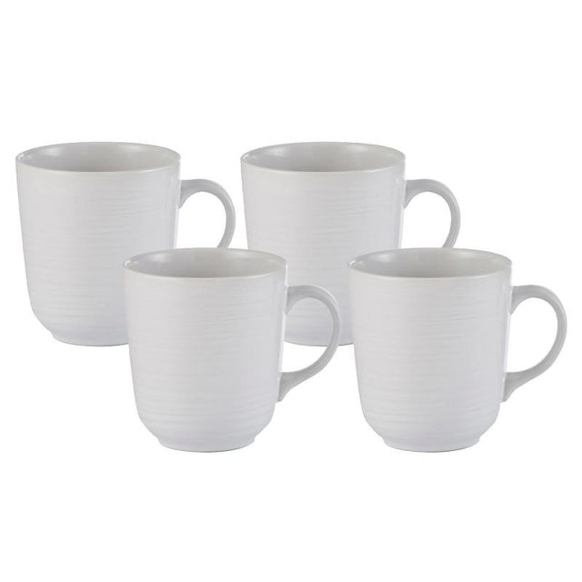Discover the elegance of the Mason Cash William Mason White Set of 4 Mugs, crafted for both beauty and functionality. These mugs feature a stylish coupe edge and an embossed ripple effect, making them perfect for relaxed dining or entertaining guests. Made from high-quality, durable stoneware, each mug is designed to endure and is safe for use in the microwave, dishwasher, and freezer, adding convenience to your modern lifestyle.