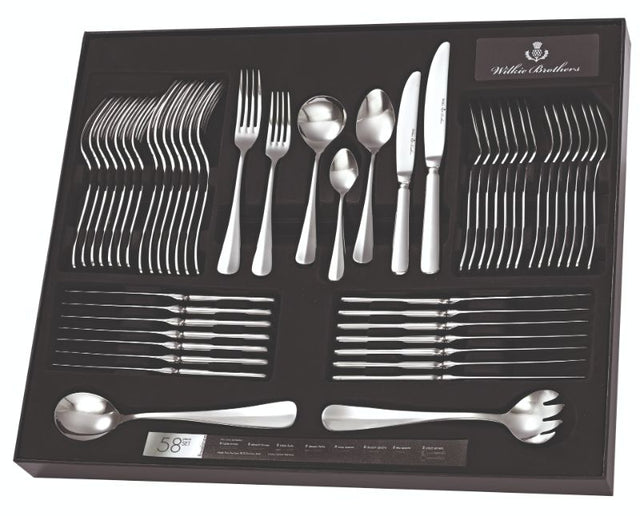 Elevate your dining experience with the exquisite Ravelstone 58 Piece Cutlery Set, a perfect blend of quality and elegance. This comprehensive cutlery collection offers everything you need for formal dining or casual gatherings, featuring 8 Table Knives, 8 Table Forks, 8 Dessert Knives, 8 Dessert Forks, 8 Dessert Spoons, 8 Soup Spoons, 8 Teaspoons, and 2 Salad Servers. Crafted from high-quality 18/10 stainless steel, each piece in this cutlery set boasts a stunning mirror finish that not only enhances your table setting but also ensures durability and longevity. Designed for both beauty and functionality, the Ravelstone set is dishwasher safe, making cleanup a breeze. The set arrives beautifully presented in a gift box, making it an ideal present for weddings, anniversaries, or housewarmings. With a lifetime guarantee, you can trust that this elegant cutlery will be a lasting addition to your home. Transform your dining space with the Ravelstone Cutlery Set and experience the perfect combination of craftsmanship and modern design, perfect for any occasion. Order yours today from Smartfox AU, where quality meets affordability!