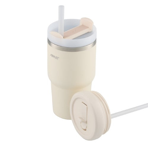Stay refreshed wherever you are with the Avanti® HydroQuench Smoothie Tumbler. Perfectly sized for your favourite smoothies, iced coffees, teas or water, this tumbler is designed to keep your drinks hot or cold for extended periods, making it an indispensable companion whether you are on the move or relaxing at home. Featuring double wall Aircore Technology, the vacuum insulation maintains the internal temperature for longer regardless of the temperature outside. Constructed from durable, high-grade stainless steel with a soft touch exterior, this condensation free, eco-friendly reusable tumbler is built to last. It comes with two interchangeable screw-top lids to suit your drinking preference. The sipper lid boasts an airtight, leak-proof silicone seal, ensuring spill-free sipping. Additionally, the multi-functional splash-proof lid includes a three-point revolving dial, facilitating easy transitions between the reusable removable straw, an open spout, and a closed setting. The wide mouth design makes filling, adding ice, and cleaning effortless, while the recessed base fits neatly into most standard car cup holders. Combining style and functionality, this tumbler is your ultimate companion, whether you're traveling or staying at home.