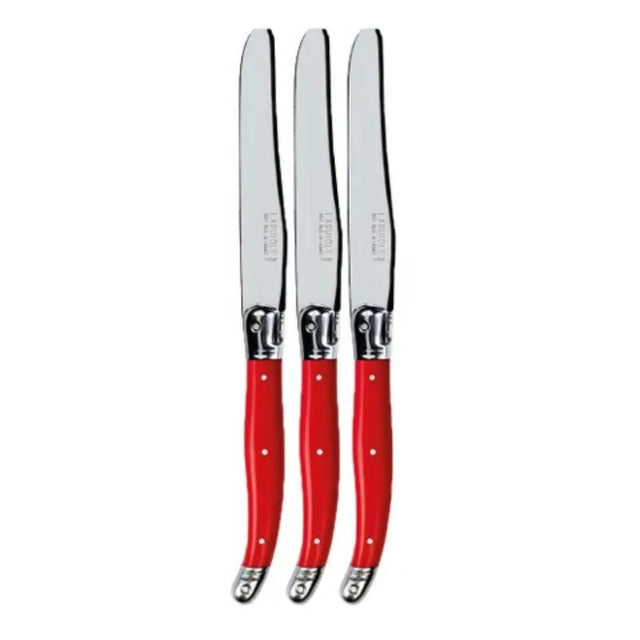 Elevate your dining experience with the Verdier Refill Table Knife Brt Red (3) from Smartfox AU. This stylish refill pack comes with three exquisite table knives, 100% made in France. Each knife features a high-quality stainless steel blade, ensuring durability and precision for all your cutting needs. The handles, crafted from robust stainless steel with a refined resin core, provide a comfortable grip while showcasing the elegance of the classic Laguiole design, complete with the trademark Laguiole Bee adorning each handle. These knives are not just functional, they bring a touch of sophistication to your table setting, making them perfect for both everyday meals and special occasions. Additionally, they are dishwasher safe for effortless cleaning, giving you more time to enjoy your meals and less time worrying about upkeep. Measuring 23cm in length, these knives are the ideal size for dining and serving. Upgrade your kitchen essentials with the Verdier Refill Table Knife and experience French craftsmanship at its finest. The price listed is for a convenient pack of 3 knives, making it a perfect choice for families or anyone who loves to entertain.