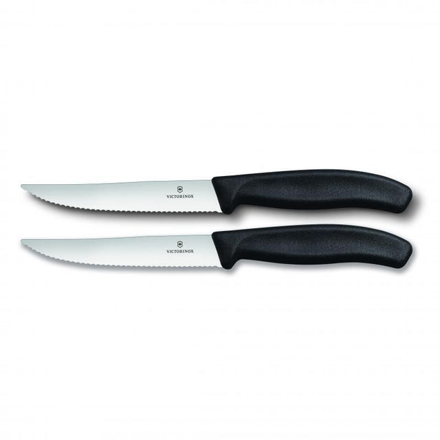 Victorinox Steak & Pizza Knife 12cm, Wide Blade, Wavy Edge, 2 Pc Set