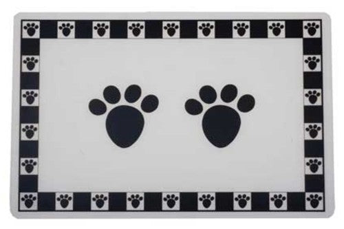 Introducing the Dog Feed Mat - Pet Paws Black Placemat, the perfect solution for keeping your pet's feeding area clean and stylish. Measuring 48cm x 30cm, this functional placemat is designed to capture spills and crumbs, ensuring your floors remain tidy during meal times. Made from durable, easy-to-clean materials, the Dog Feed Mat is not only practical but also features an attractive pet paws design that complements any home decor. Ideal for dogs of all sizes, this pet accessories essential is also great for cats! With a non-slip surface, the Pet Paws Black Placemat helps keep your bowls in place, preventing mess and spills while making feeding time a breeze. It's time to elevate your pet's mealtime experience with our premium dog food mat. Whether you're looking for dog feeding mats, pet placemats, or spill-proof feeding solutions, the Dog Feed Mat - Pet Paws Black Placemat is your go-to choice. Perfect for active pets, this mat is machine washable for face-value convenience. Order yours today and discover how this simple addition can transform your pet's feeding routine into a neat and enjoyable experience!