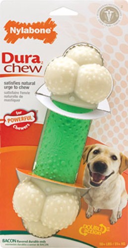 Nylabone - Dura Chew * Double Action Chew * Satisfies natural urge to chew * For powerful chewers * Bacon flavoured, durable ends * For dogs 23kg +