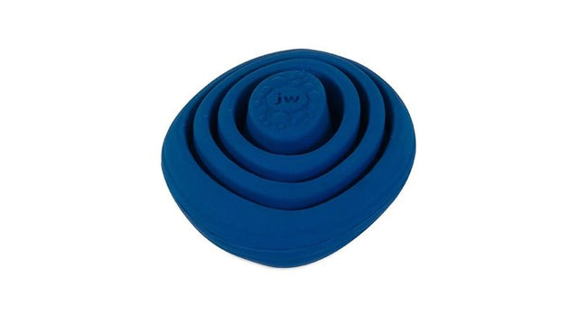 Inspired by nature to create the perfect teething toy, the Puddle Stone Pop has grooves to allow water to freeze and create icy pockets that gives your puppy much needed relief from achy gums caused by teething. As your puppy chews, the soft rubber and textured surface gently massages gums while the icy grooves provide pain relief. When the teething phase is over, turn this freez-ee teether toy into a fun treat-ee toy by spreading peanut butter or toothpaste made for dogs into the grooves of the toy. Give your puppy a safe chew toy to chew on with JW's Puddle Stone Pop Puppy Teether.