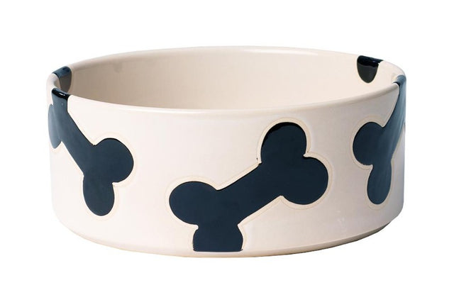 Introducing the Slicker Bones Bowl in Black/Natural - a stylish and functional feeding solution for your beloved pets. This uniquely designed dog bowl measures 18cm in diameter, making it perfect for both small and medium-sized pets. Crafted from high-quality, hand-crafted stoneware, the Slicker Bones Bowl is not only durable but also safe, as it fully complies with FDA regulations for human consumption. With its chic black and natural color scheme, this pet bowl seamlessly blends into any home decor, elevating your pet's dining experience. Its sleek design and sturdy construction ensure that it remains stable while your furry friend enjoys their meal. Plus, it’s both dishwasher and microwave safe, making clean-up and meal prep easier than ever. Say goodbye to flimsy bowls and embrace a stylish, practical choice that your pet will love! Ideal for serving dry kibble, wet food, or even treats, the Slicker Bones Bowl is the ultimate solution for discerning pet owners. Transform mealtime into a delightful experience with this functional piece that embodies both style and safety. Choose the Slicker Bones Bowl - Black/Natural for a perfect blend of aesthetic and utility, and let your pets dine in comfort and style.