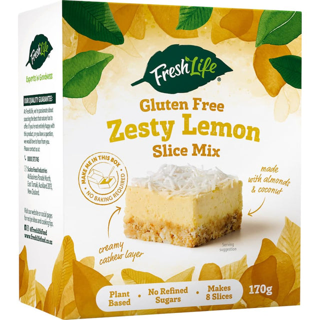 Introducing Freshlife Slice Mix Zesty Lemon Gluten Free, your new favorite guilt-free indulgence! This delicious slice mix is packed with wholesome, healthy ingredients like almonds, coconut, and cashews, ensuring a delightful plant-based treat without the guilt. Whether you enjoy it as a snack during your busy morning or as a refreshing dessert after dinner, this raw slice mix requires no baking, making it quick and easy to prepare. Perfect for those who are gluten-sensitive or looking for a healthier alternative, our Zesty Lemon Slice Mix will satisfy your sweet cravings while keeping your dietary needs in check. The vibrant zesty lemon flavor brings a burst of freshness to your palate, while the natural sweetness from the carefully selected ingredients makes it a perfect addition to your healthy lifestyle. Ideal for sharing at gatherings or enjoying solo, this gluten-free slice mix supports your health-conscious choices without compromising on taste. Dive into the delightful world of guilt-free eating with Freshlife Slice Mix Zesty Lemon and transform your snacking experience. Order yours today from Smartfox AU and discover how easy it is to treat yourself without the calories! Elevate your healthy living with this refreshing and nutritious option, and enjoy the perfect balance of flavor and health in every bite. Don't miss out on your chance to delight your senses with this fantastic product.