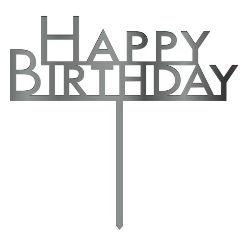 Cake Topper Pick Happy Birthday Silver Acrylic