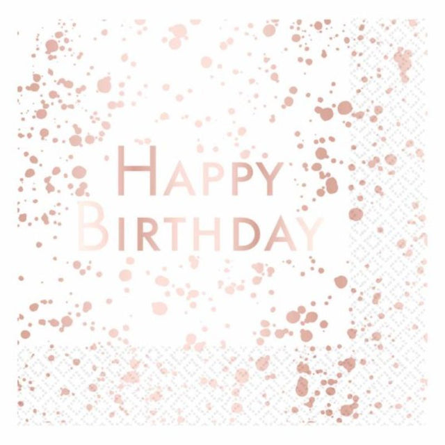 Rose Gold Happy Birthday Lunch Napkins - Pack of 16