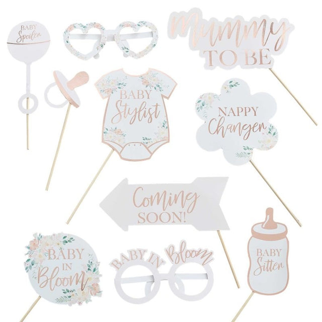 Baby in Bloom Photobooth Props Rose Gold Foiled Pack of 10