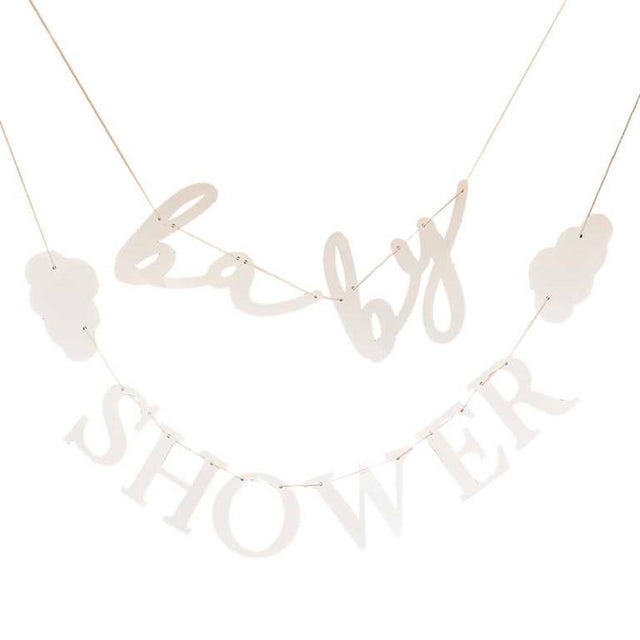 Product details: Complete your baby shower decor with this gorgeous baby shower bunting. This baby shower decorations pack contains 1 x 'baby shower' bunting on 2 strands measuring 1.5m.
