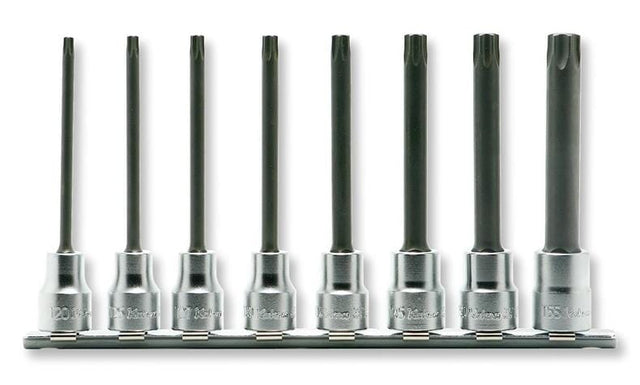 Explore the Koken RS3025-100 Torx Bit Socket Set, a reliable 8-piece collection from T20 to T55, designed for 3/8" drive applications. Perfect for professionals and DIY enthusiasts alike, these bits are crafted in Japan for exceptional quality. They enhance torque transfer, reduce end load, and minimize slippage for seamless fastening tasks.