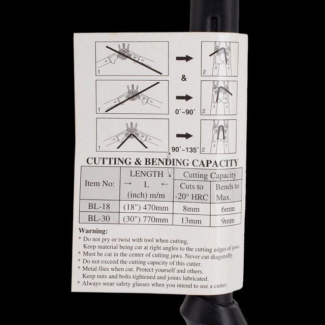 Introducing Manor Unco-Bolt & Bend Cutters, the revolutionary 2-in-1 tool that seamlessly integrates the functionalities of traditional bolt cutters and steel bar benders. Crafted with precision, its drop-forged chrome molybdenum alloy steel cutting blades/jaw guarantee durability and efficiency. The unique adjustable cam bolt blade ensures versatility, allowing users to tailor their cutting experience. Designed with high tensile jaws and non-slip handles, this tool provides a secure grip and optimal control. What sets it apart is its bending capability, offering a range from 0° to 180°, enabling users to effortlessly bend steel bars at various angles. Manor Unco-Bolt & Bend Cutter - Do it all.