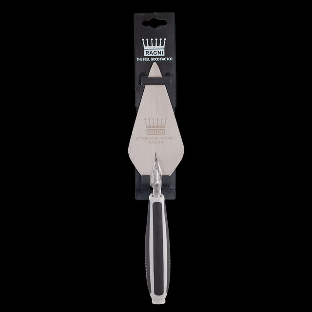 Discover the RAGNI 150mm Pointing Trowel, your ultimate tool for precision in masonry and cement work. This premium pointing trowel features a highly flexible carbon steel blade, expertly hardened and tempered to ensure maximum strength and longevity. Its well-balanced design offers superior control and maneuverability for tackling small cavities and repairing mortar joints with ease.