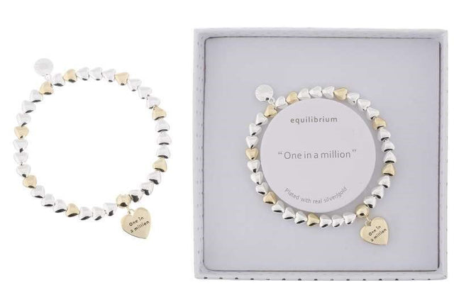 Discover the enchanting Equilibrium Heart Galore 2 Tone Bracelet, embodying friendship and connection. This exquisite piece features a unique two-tone finish with radiant gold and timeless silver. Crafted with meticulous attention to detail, it's plated with real silver for a luxurious, long-lasting shine. The heart motif represents love and bonds between friends, making it the ideal gift for special occasions like birthdays and anniversaries or just to show appreciation. Suitable for everyday wear or formal events, this bracelet enhances any outfit effortlessly. With a secure clasp for elegance and functionality, it arrives beautifully packaged with a bracelet tray, perfect for gifting. Treat yourself or surprise a friend with the Equilibrium Heart Galore Bracelet, a meaningful accessory that resonates with heartfelt sentiments. Celebrate friendship and style with this exquisite piece, essential for any jewelry collection. Don't miss the chance to add this captivating bracelet to your accessory wardrobe.