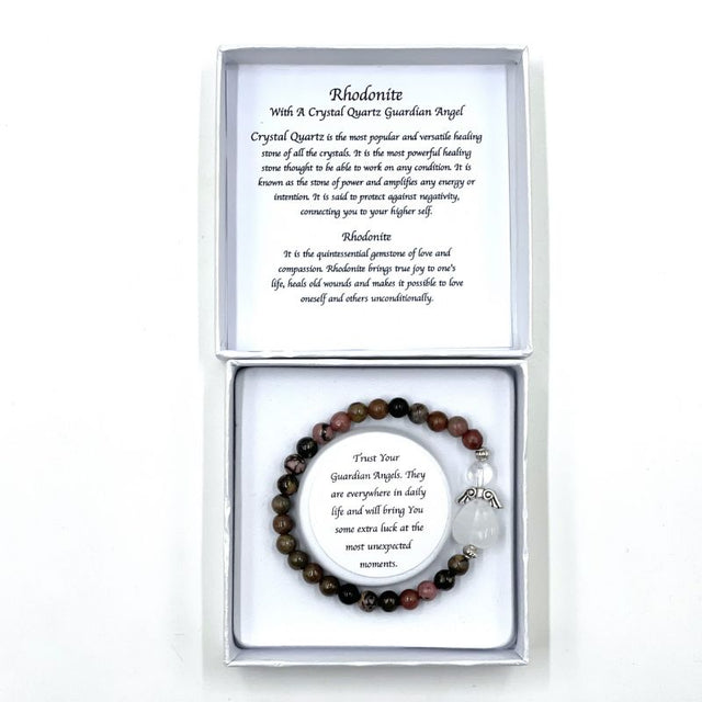 Bracelet - Rhodonite Crystal Heart Guardian Angel